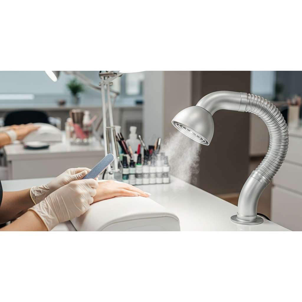 Professional nail services generate fine particulate dust and chemical vapors that require specialized extraction.
