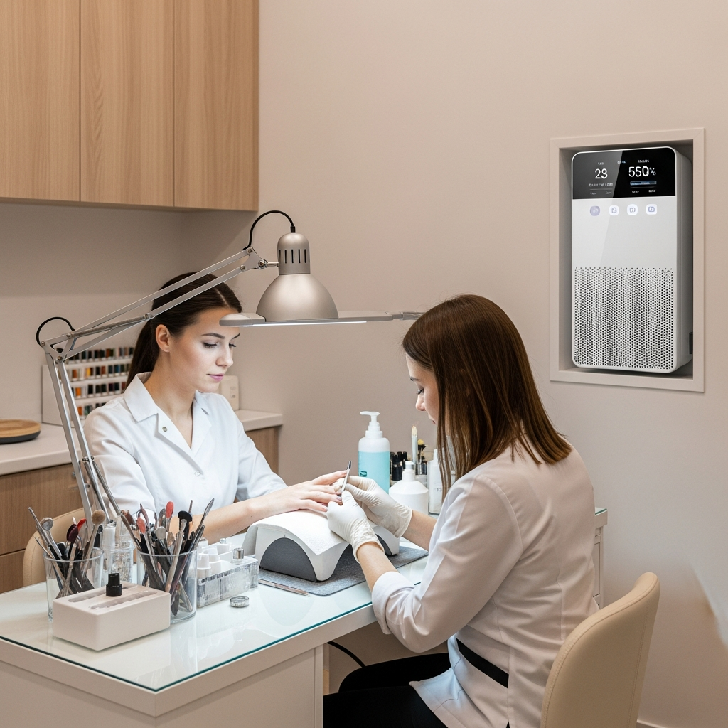 Professional nail salons must implement dual-action filtration to address both dust and chemical vapors.